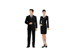三、職業裝定做的色彩設計環節是整個設計過程中的重要環節,在遵循社會大的流行趨勢的同時,還要考慮服裝色彩與室內工作環境色彩的關系及由此產生的心理、生理作用;一般職業職業裝定做的配色以低彩度的同類色為主,顏色以不宜超過三色為原則,包括服飾、配件在內.