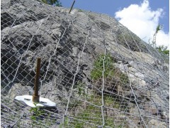 主動防護(hù)系統(tǒng)是以鋼絲繩網(wǎng)為主的各類柔性網(wǎng)覆蓋包裹在所需防護(hù)斜坡或巖石上,以限制坡面巖石土體的風(fēng)化剝落或破壞以及為巖崩塌(加固作用),或?qū)⒙涫刂朴谝欢ǚ秶鷥?nèi)運(yùn)動(圍護(hù)作用)。是柔性防護(hù)網(wǎng)的一種。